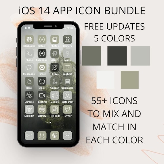 Sage Green Ios 14 15 App Icons Aesthetic 1200 Neutral Iphone Etsy